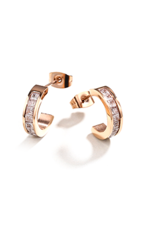 Baily White Zirconia C Hoop Stud Earrings in Rose Gold