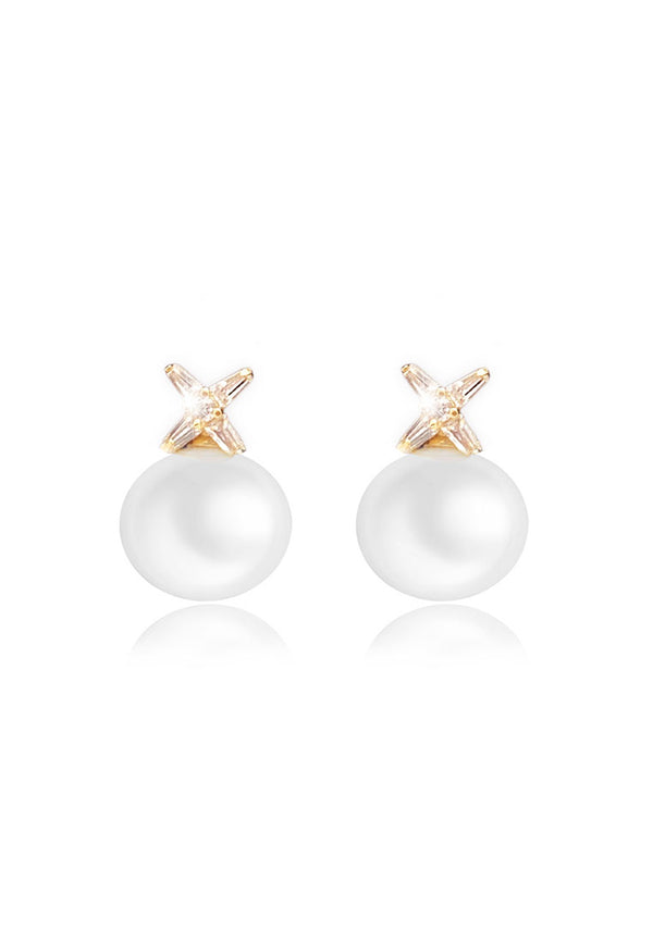 Pearl Blanche Classic White Real Pearl in Rose Gold Stud Earrings