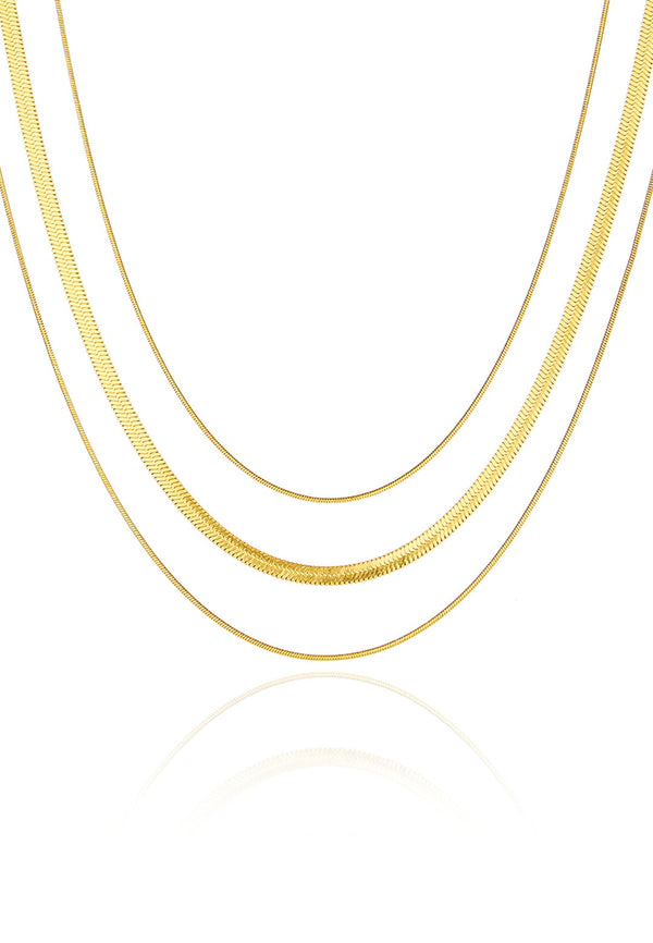 Sahara Herringbone Plain Three Layer Chain Necklace in Gold