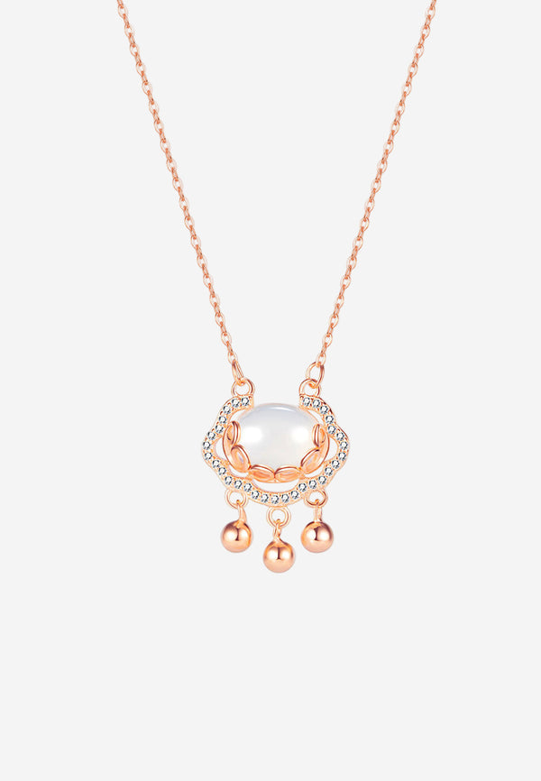 Lucky Blessed Hulu with Pearl & Cubic Zirconia Pendant Chain Necklace in Rose Gold