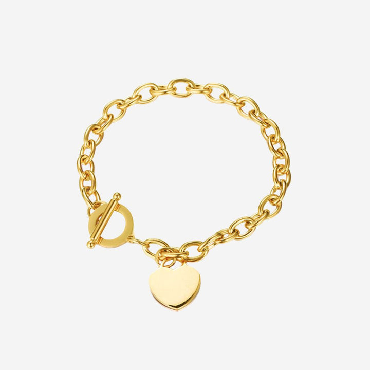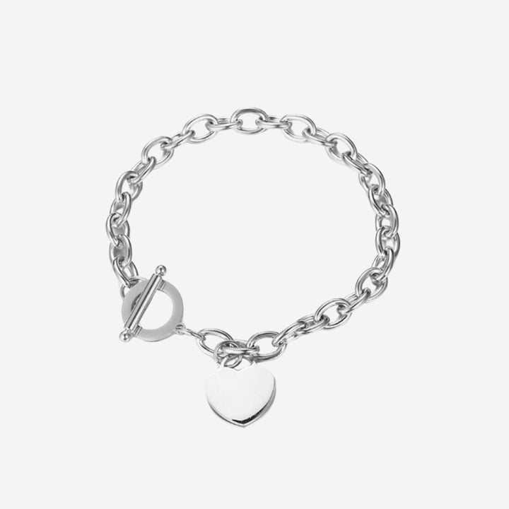 Adora Engravable Heart Pendant with Chain Link Toggle Clasp Anklet