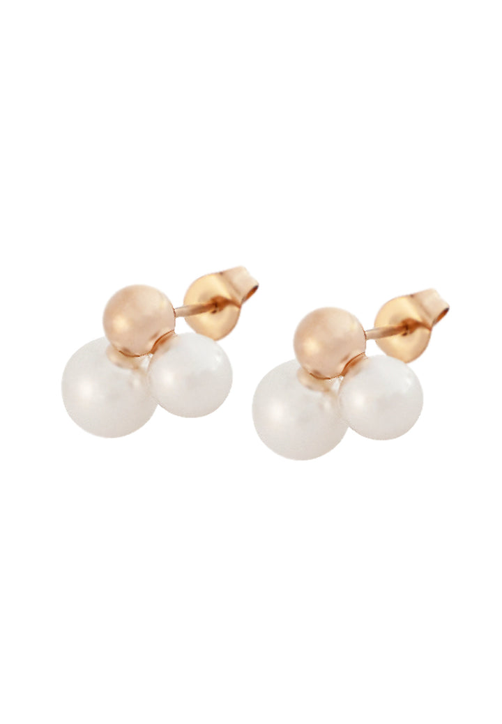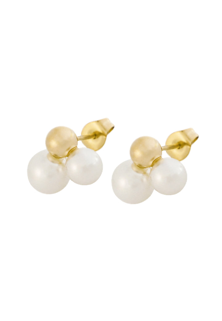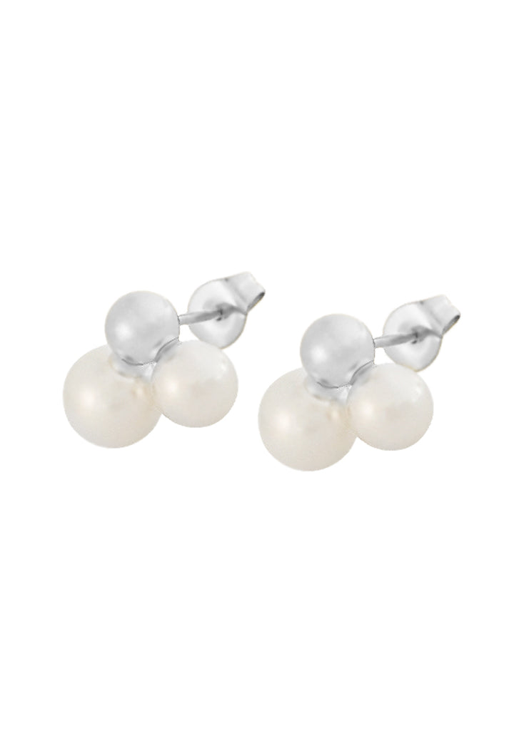These earrings feature a charming composition of two pearls. The smaller pearl atop anchors the pristine white pearl below, symbolizing unity and the harmonious blend of tradition and innovation. Ideal for both everyday wear and special occasions, these earrings are a versatile addition to any jewellery collection.