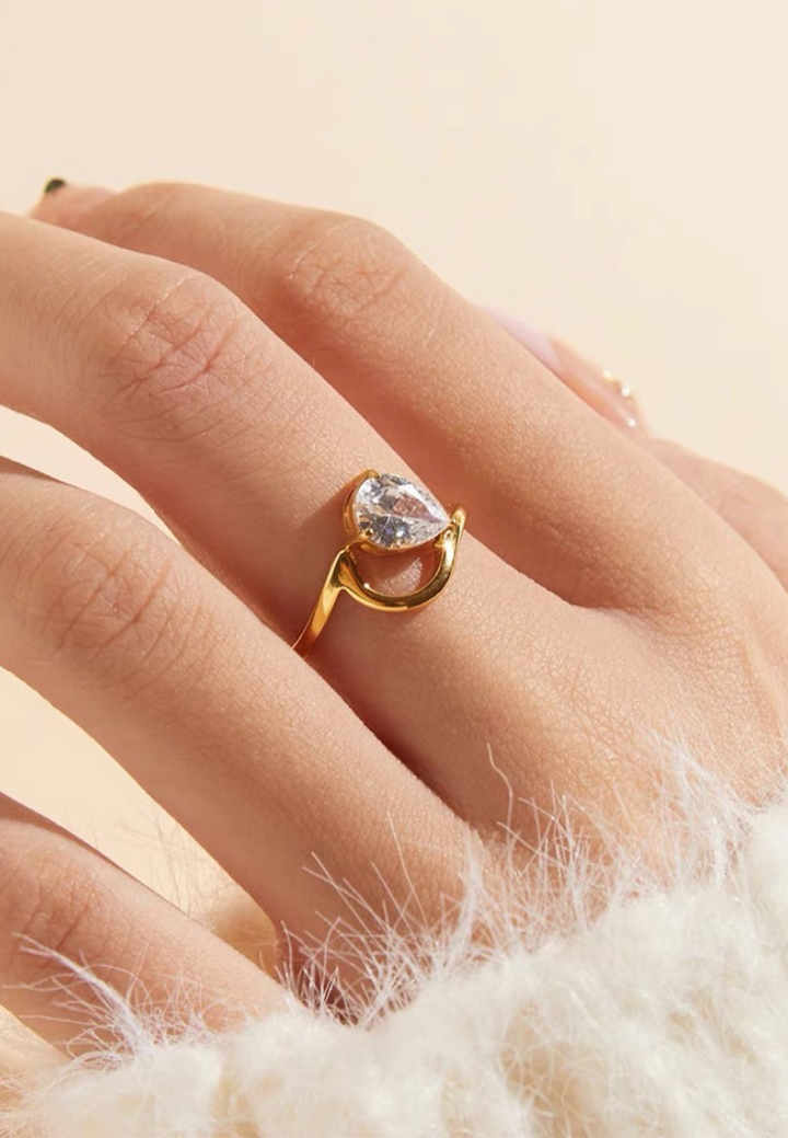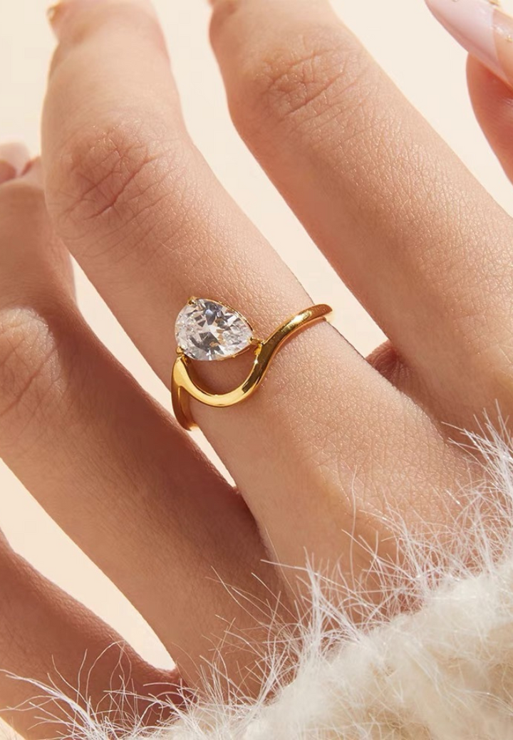 Aria Cubic Zirconia Curve Band Ring in Gold