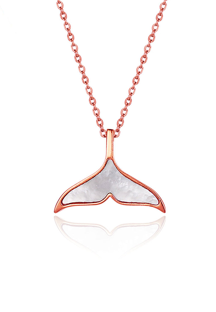 A necklace that is inspired by the mermaid tail. The tail is designed in mother of pearl, giving it a graceful ivory sheen when viewed from all directions. Life is an ocean that teaches you to be your own mermaid.