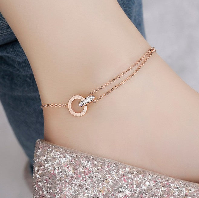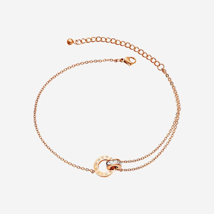 Athena Interlocking with Roman Numeral Anklet in Rose Gold