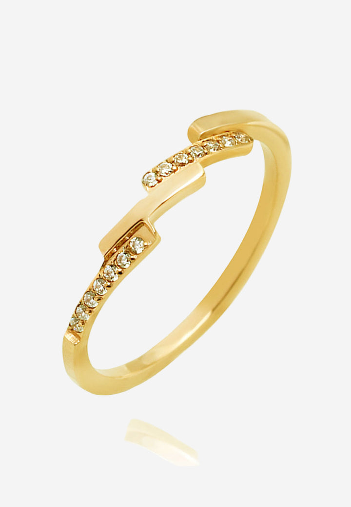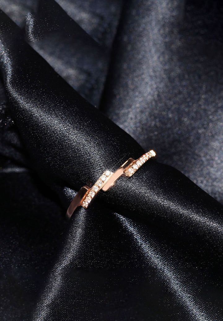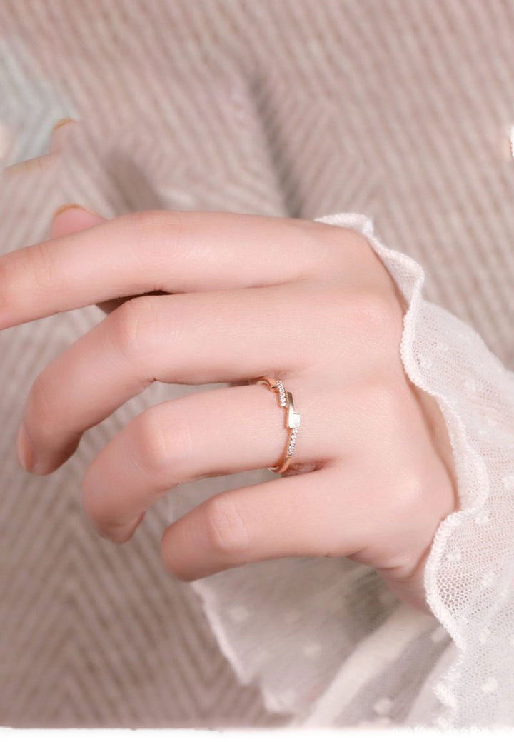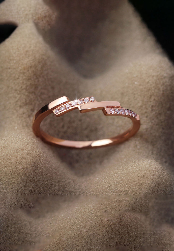 Celovis Jewellery Bridget Geometric Bar with Embedded Cubic Zirconia Inset Ring in Rose Gold
