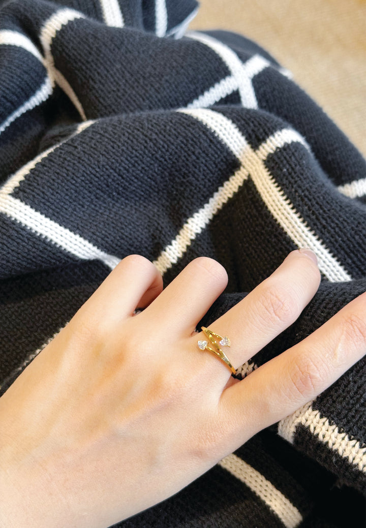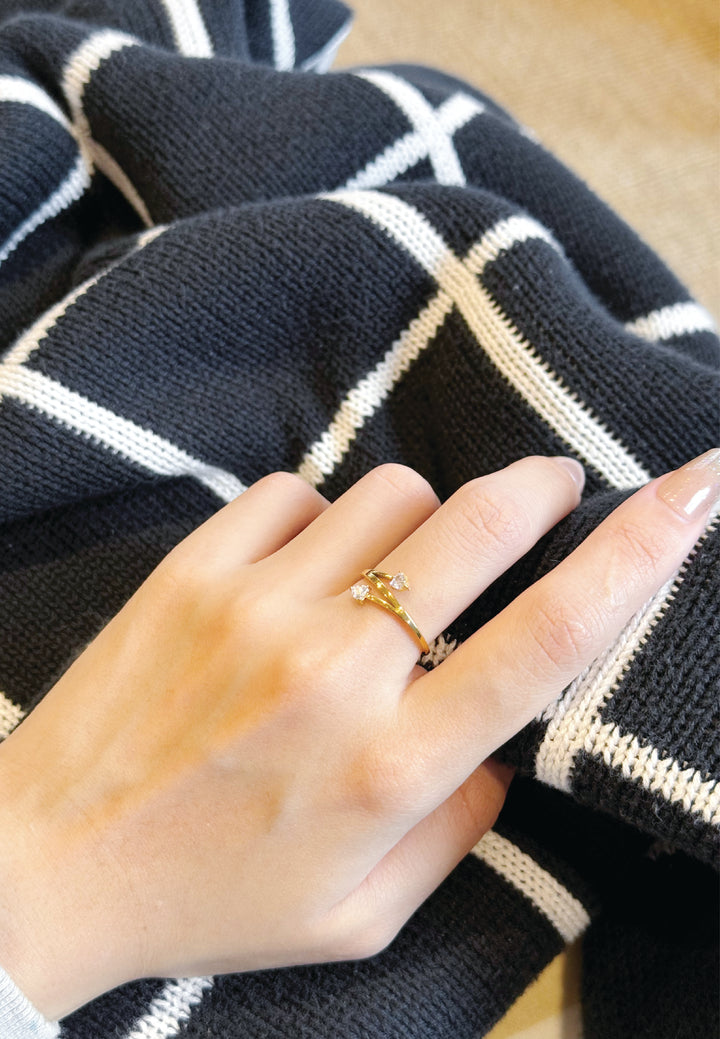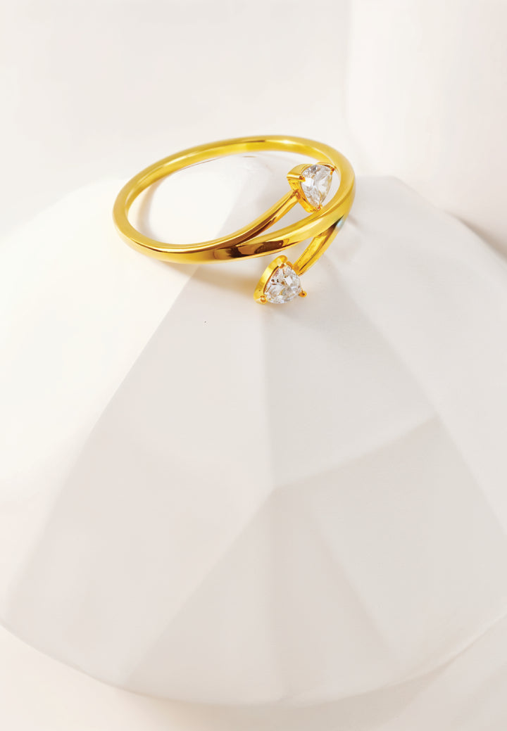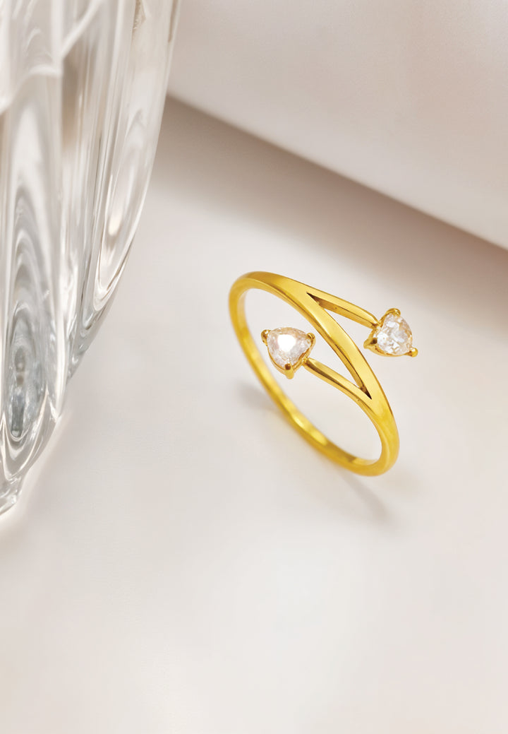 Gemini Twin Cubic Zirconia Gem Ring in Gold