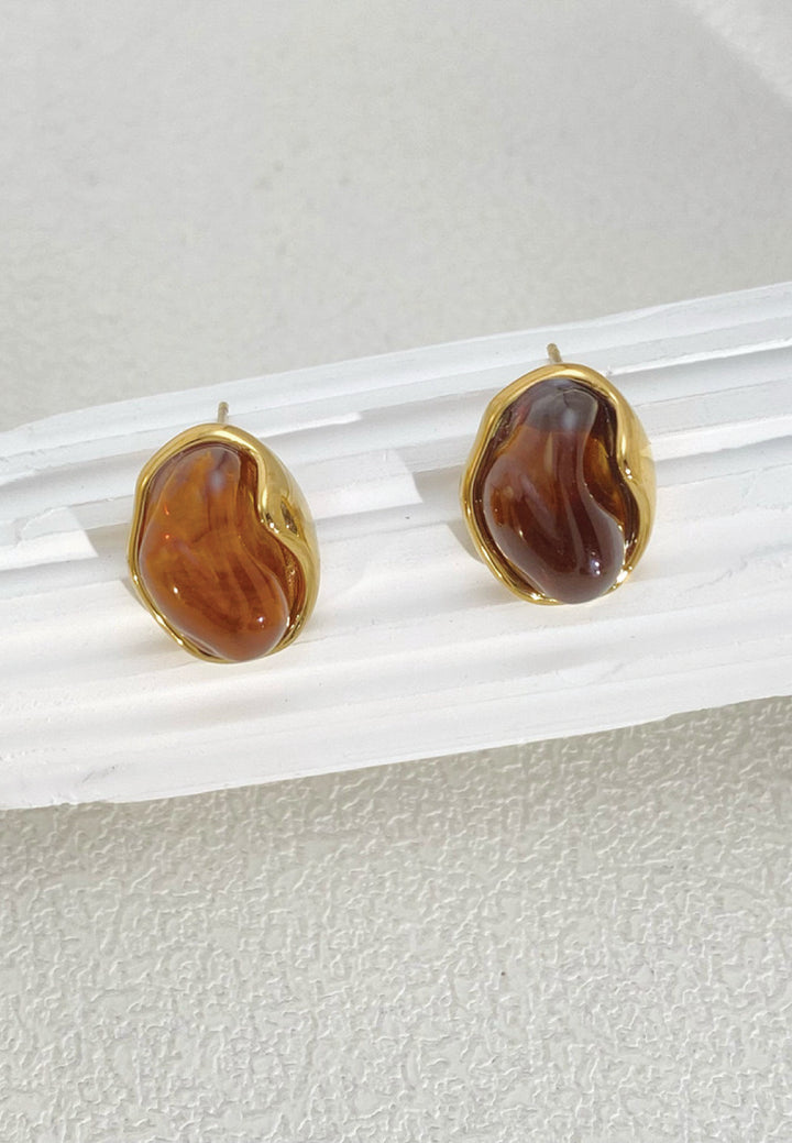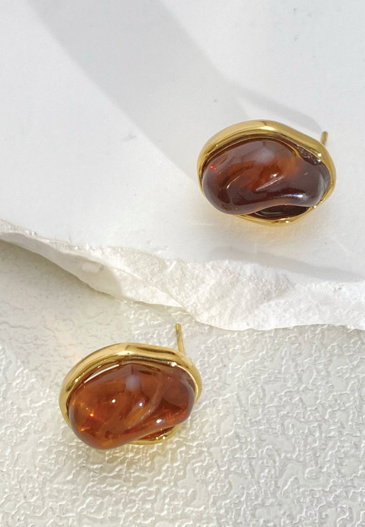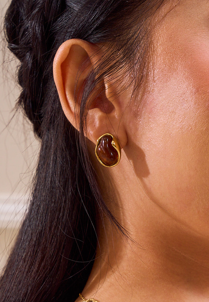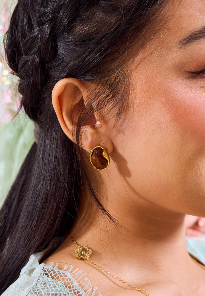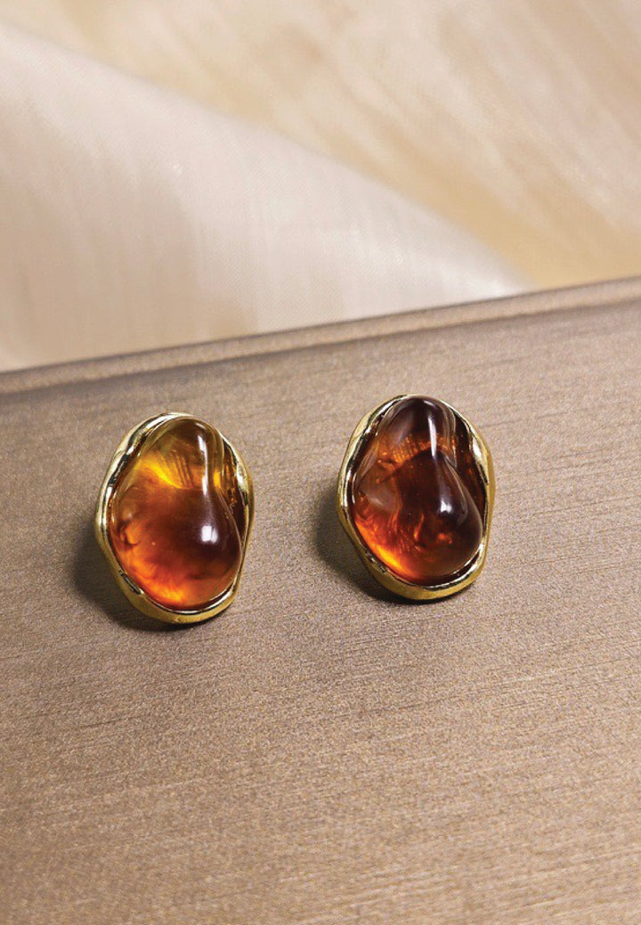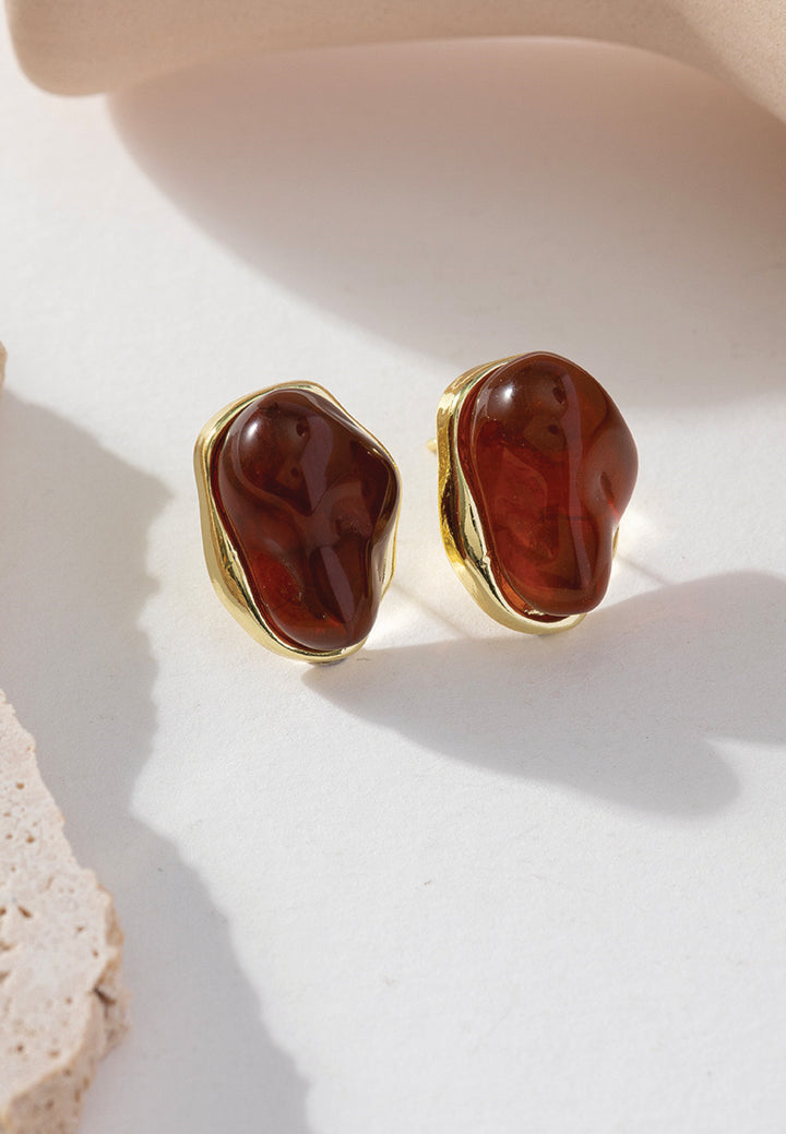 Introducing the Umber Stud Earrings, where the allure of the earth is captured in the warmth of amber resin. These distinctive earrings showcase amber resin stones that glow with a rich, deep umber hue, embedded in a simple yet elegant stud setting. These earrings blend the rustic charm of natural elements with the refined touch of modern jewellery making.