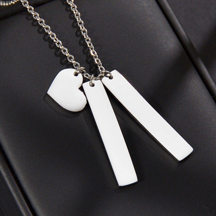 Created to symbolize the enduring foundations of love, it features a trio of pendants - a heart that captures the essence of affection, flanked by two sleek elongated bars that represent strength and stability in relationships. A beautiful expression of meaningful connections ideal for daily wear or special occasions, pairing seamlessly with any outfit while adding a touch of sentiment and style.