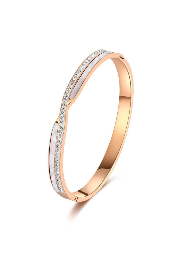 Claudette Mother Pearl with Cubic Zirconia Engravable Bangle