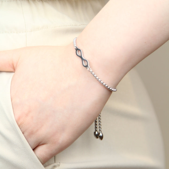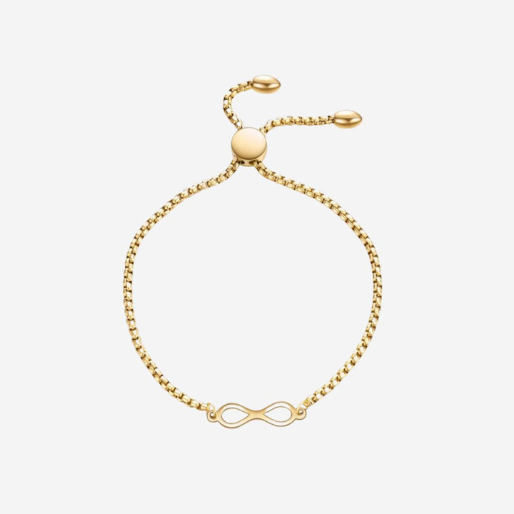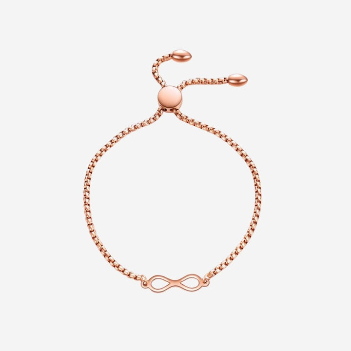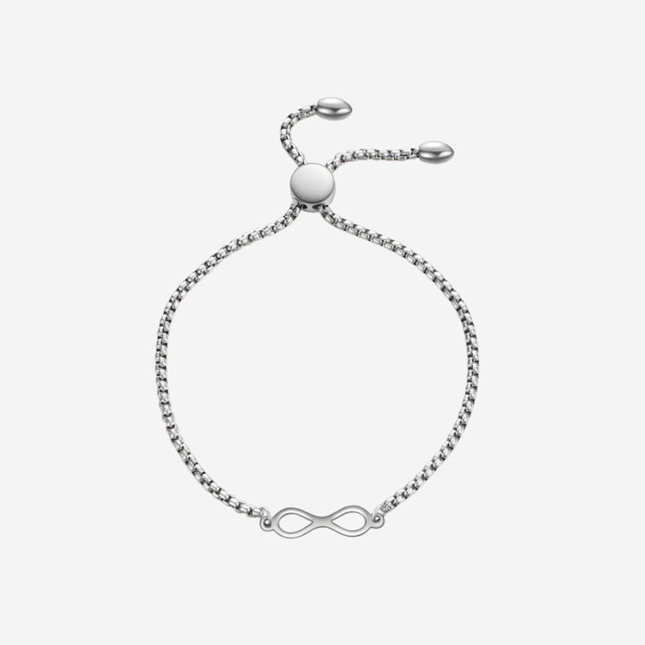 A minimalist chain bracelet in slider clasp with the Infinity charm. The symbol of neither a beginning nor an end, limitless and infinite possibilities, the union between two souls, and also, eternal love. It can also be interpreted as endless possibilities for women. Let this design be your infinity symbol.