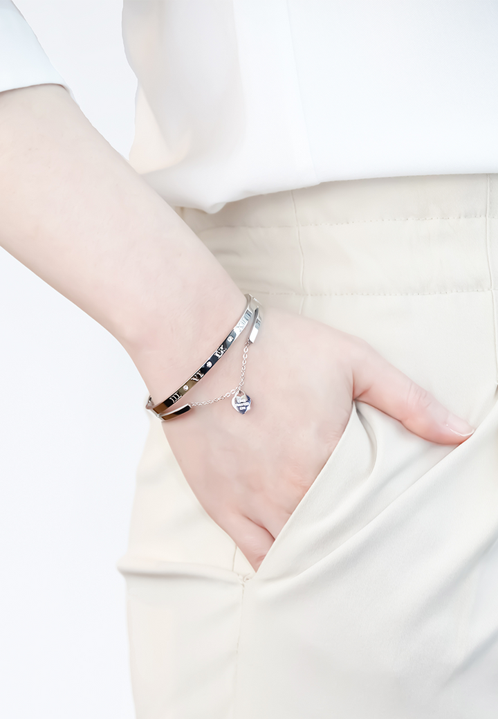 Keira Roman Numeral Dias with Heart Hinged Bangle