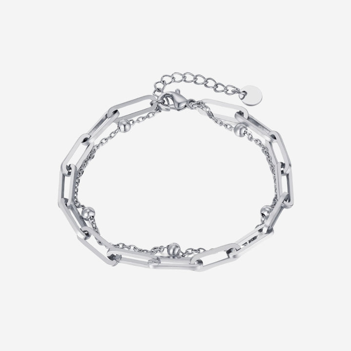 A bracelet layered with two types of chains in one. Casual or chic, the interplay of different chains gives it a perfect blend of versatility and style for every day.