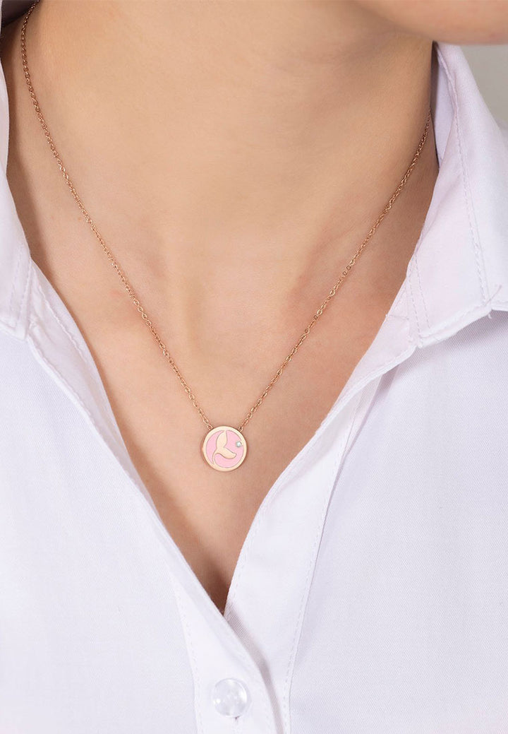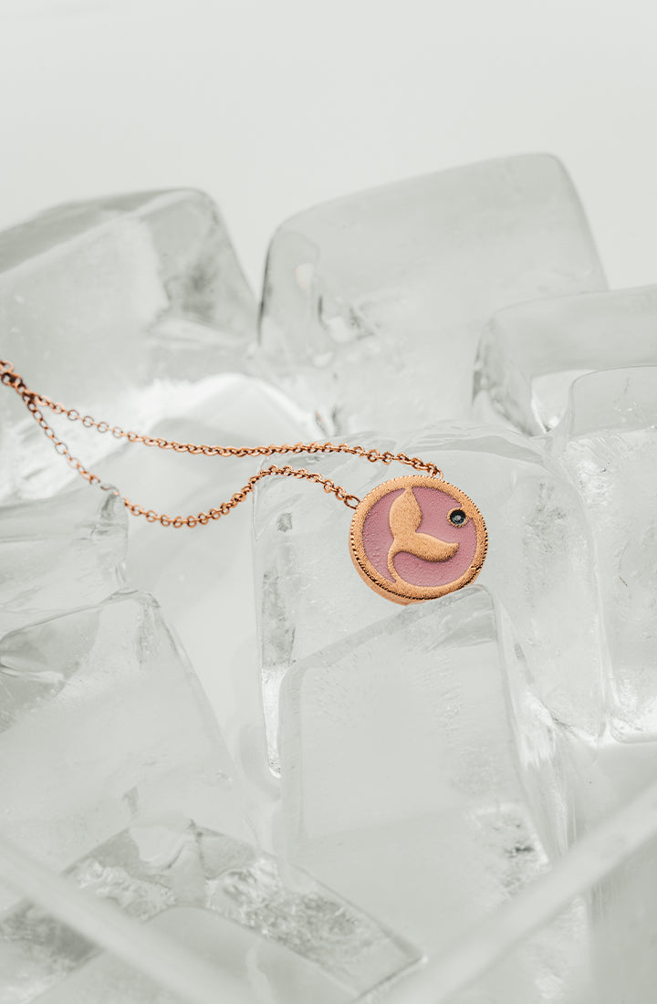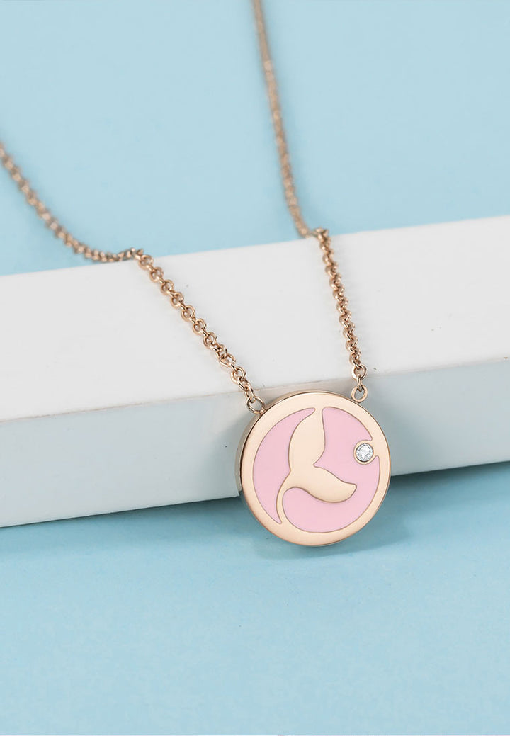 Celovis Naia Mermaid Tail Pink Pendant with 0.005 Carat Diamond Necklace