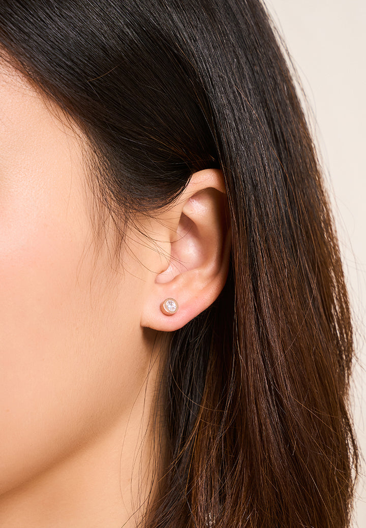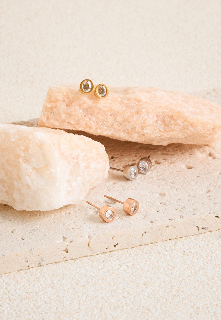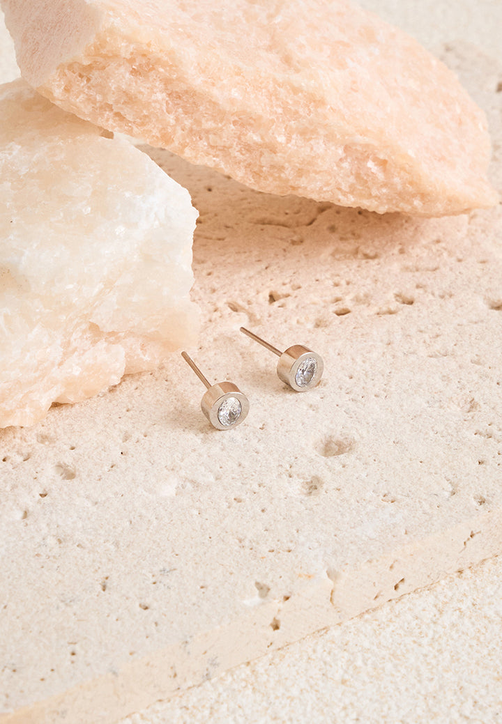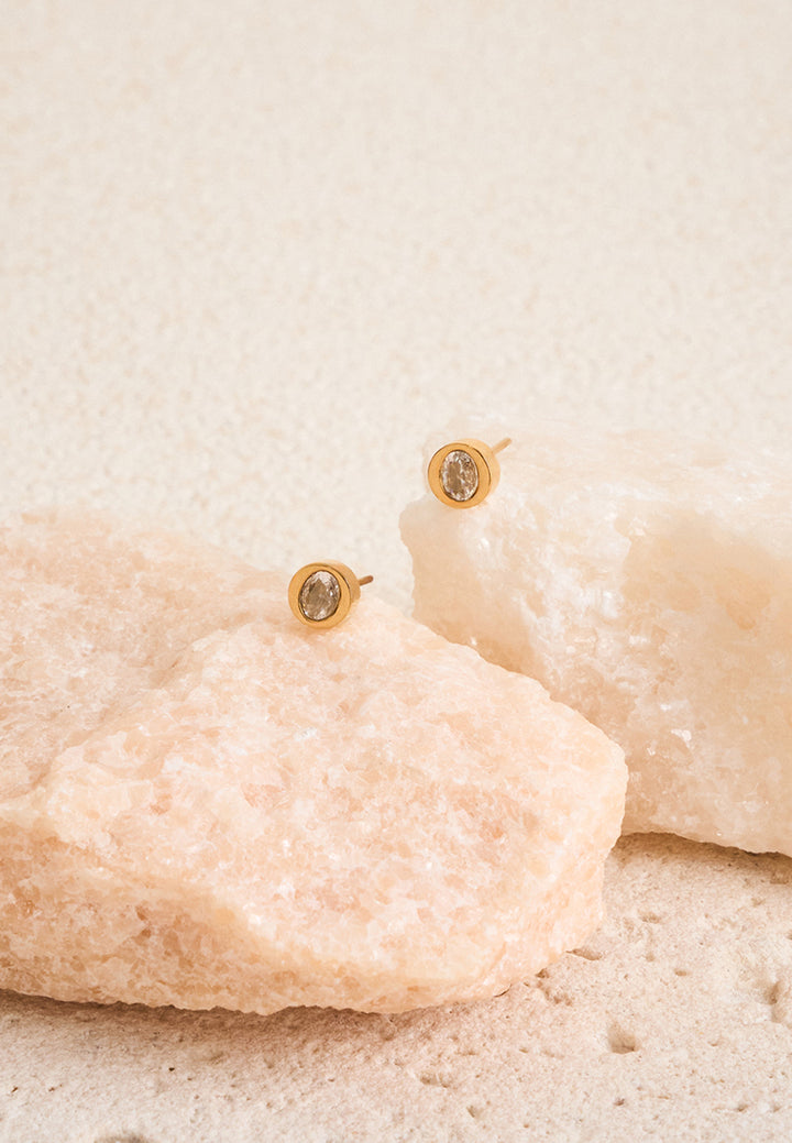 Each stud features a bezel-set cubic zirconia in an elongated oval silhouette. The clean finish and smooth edges make it a versatile piece that flatters from every angle, offering subtle radiance in a refined form. Nova is a quiet celebration of the light you carry within.
