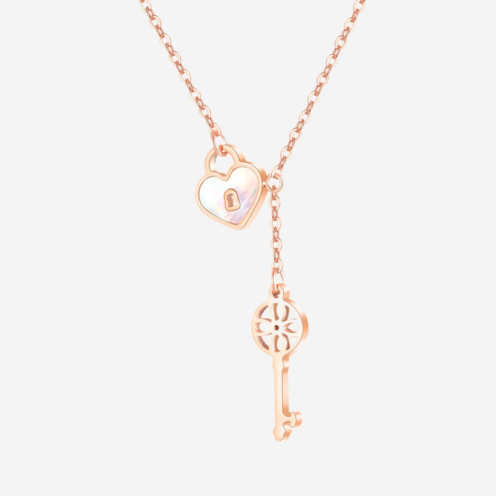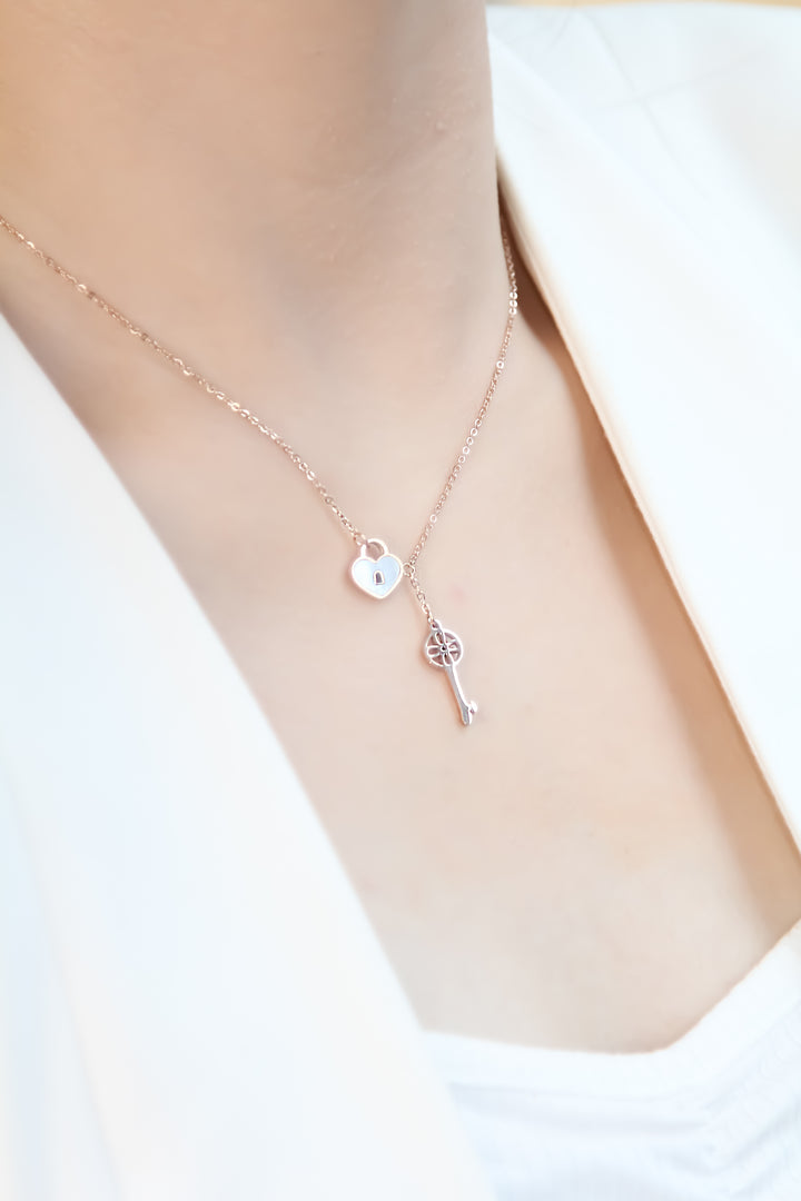 Promise Heart Lock and Drop Key Necklace in Rose Gold