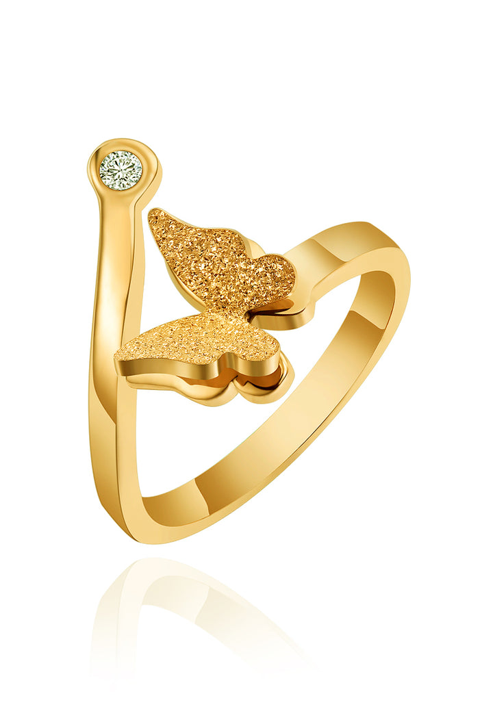 A delicate ring that gently wraps around the finger like a companion for your daily occasion. It depicts the butterfly in a spiraling downward motion from the glittering zirconia.