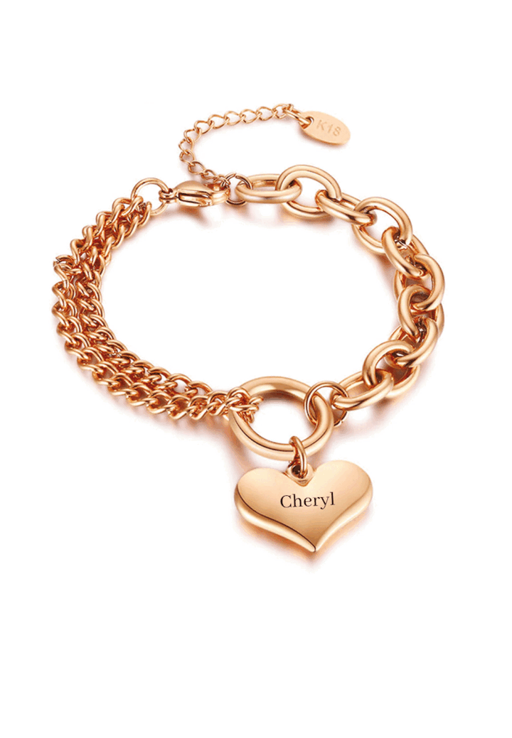 Celovis Jewellery Saint Heart Engravable Pendant on Multi Chain Link Bracelet