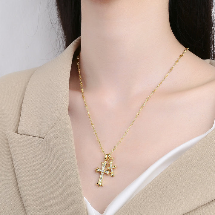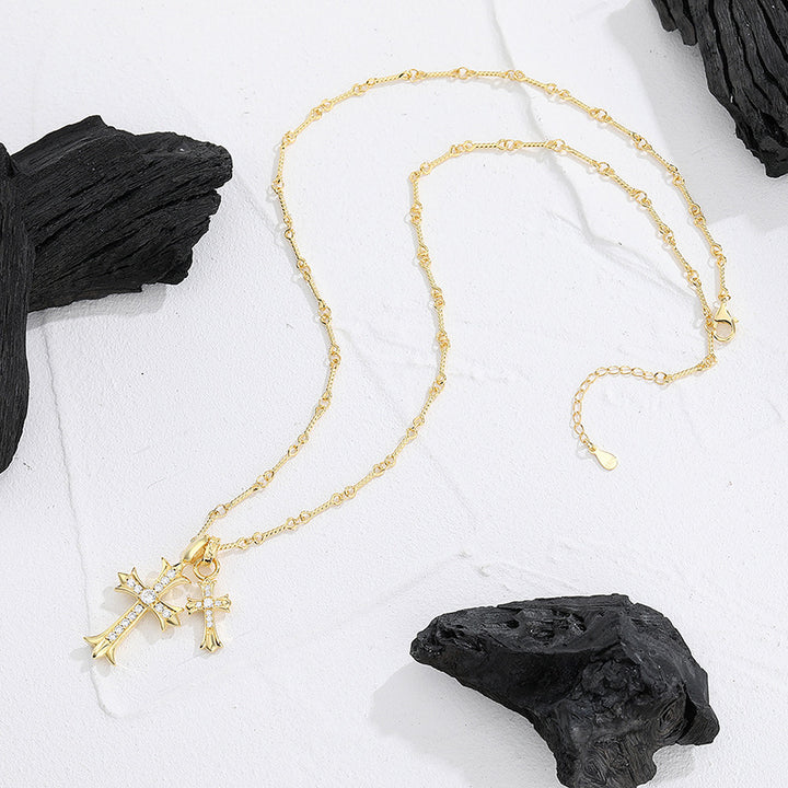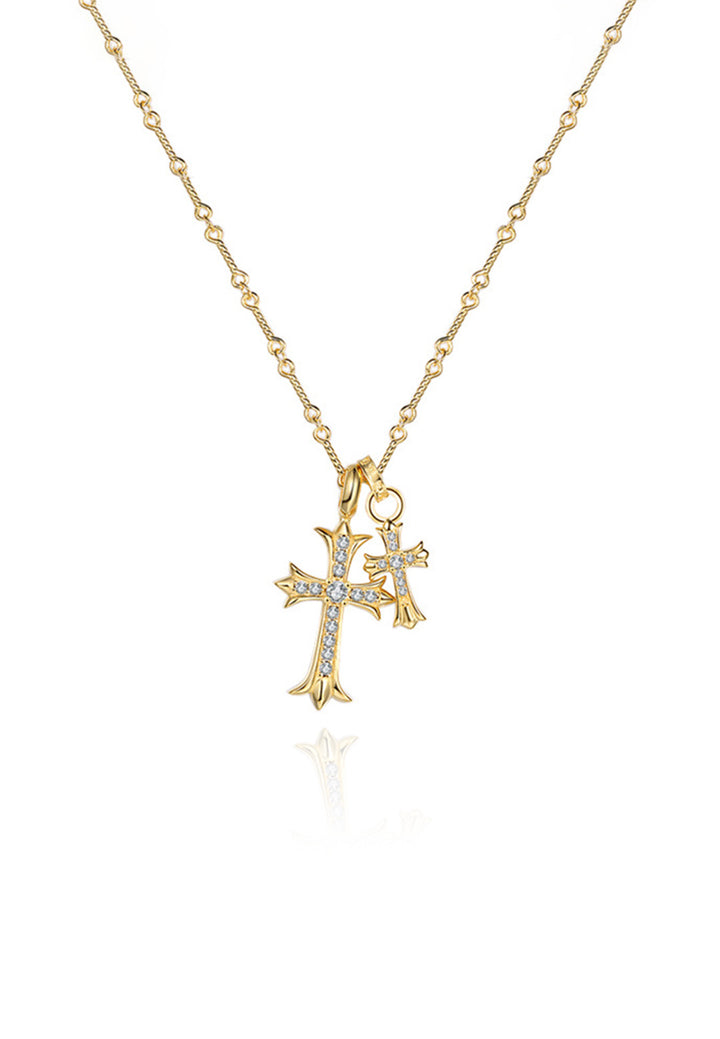 Xavier Cross with Cubic Zirconia Engravable Pendant Chain Necklace in Gold