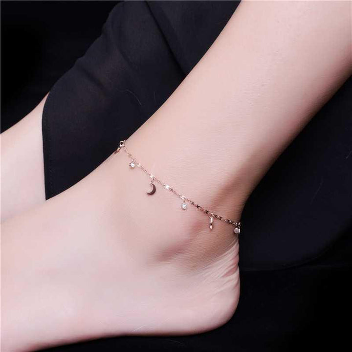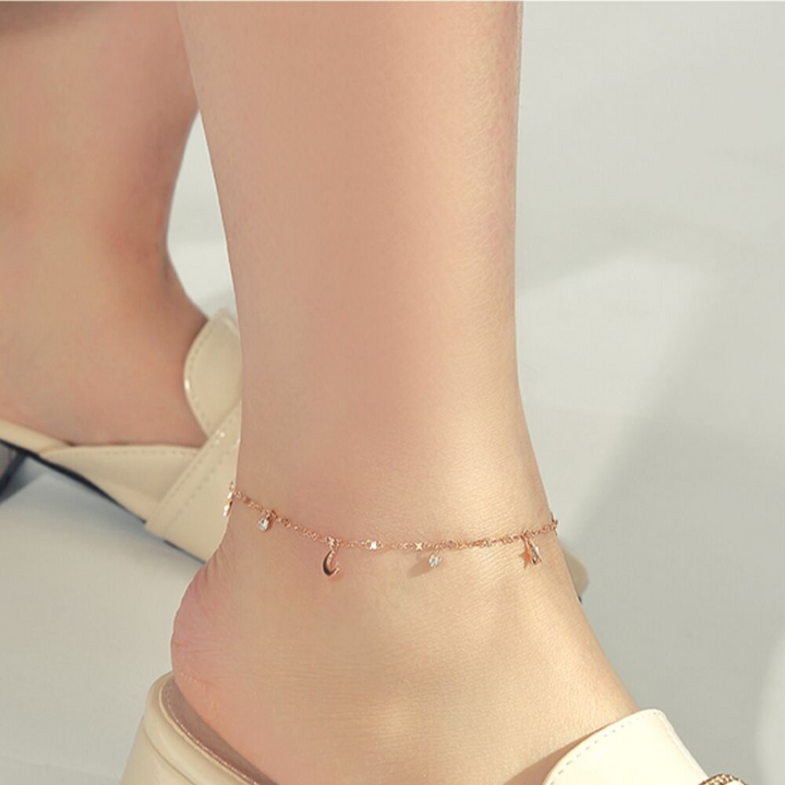玫瑰金天月星星配氧化锆脚链