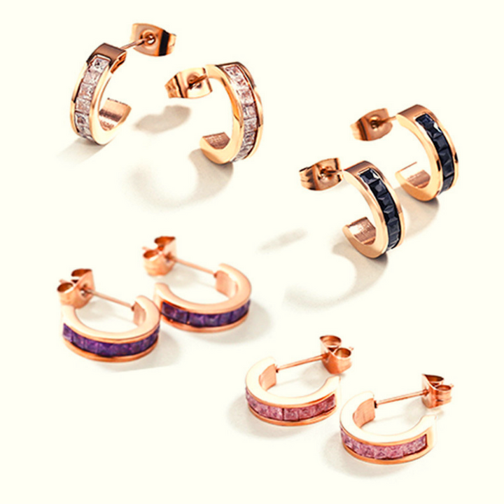 格鲁吉亚氧化锆 C 圈玫瑰金耳钉