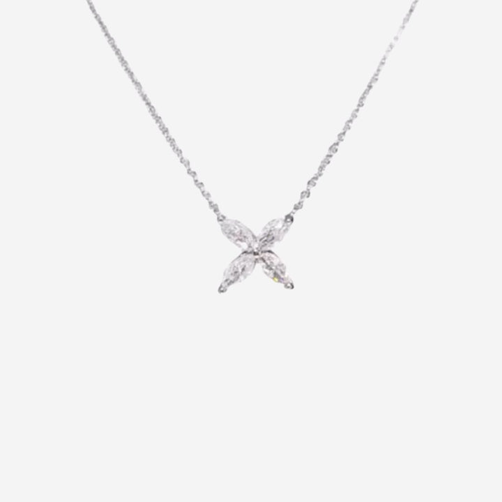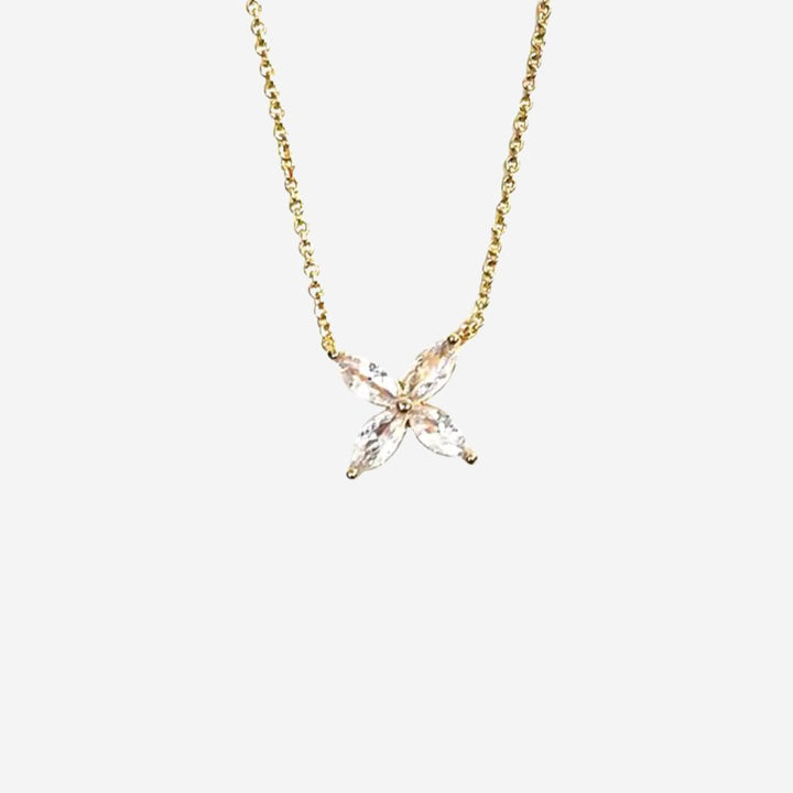 A chain necklace with a zirconia pendant shaped in the Ixora flower. The four-petaled flower boasts a timeless aesthetic that easily complements any look you have in mind.
