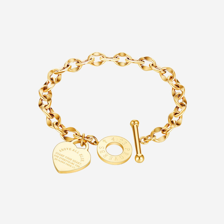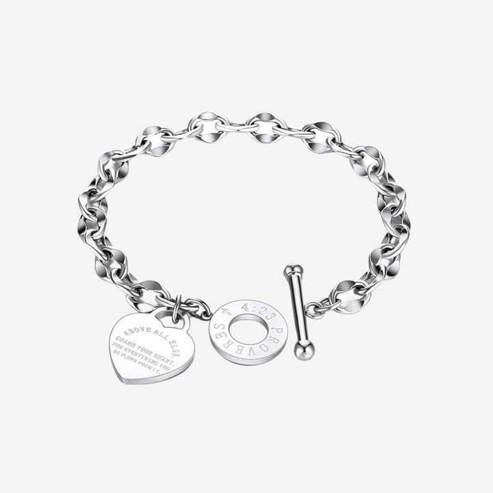 Kelby Proverbs 4:23 心形标签吊坠扣环手链