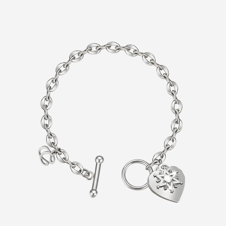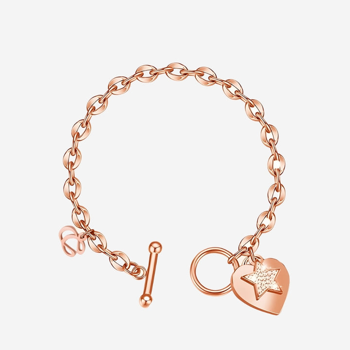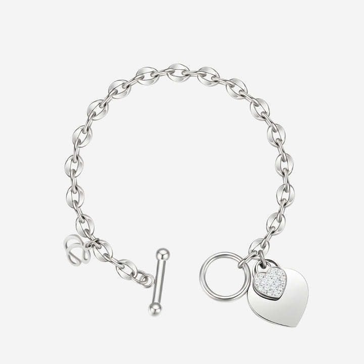 La Devotion CZ Heart Tag Pendant Toggle Clasp Bracelet