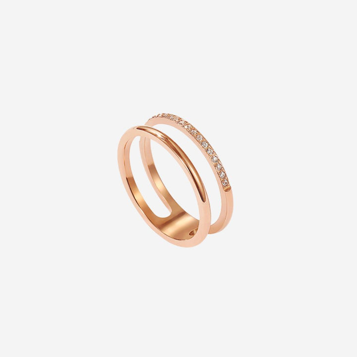 Lottie Cubic Zirconia Double Twin Band Ring in Rose Gold