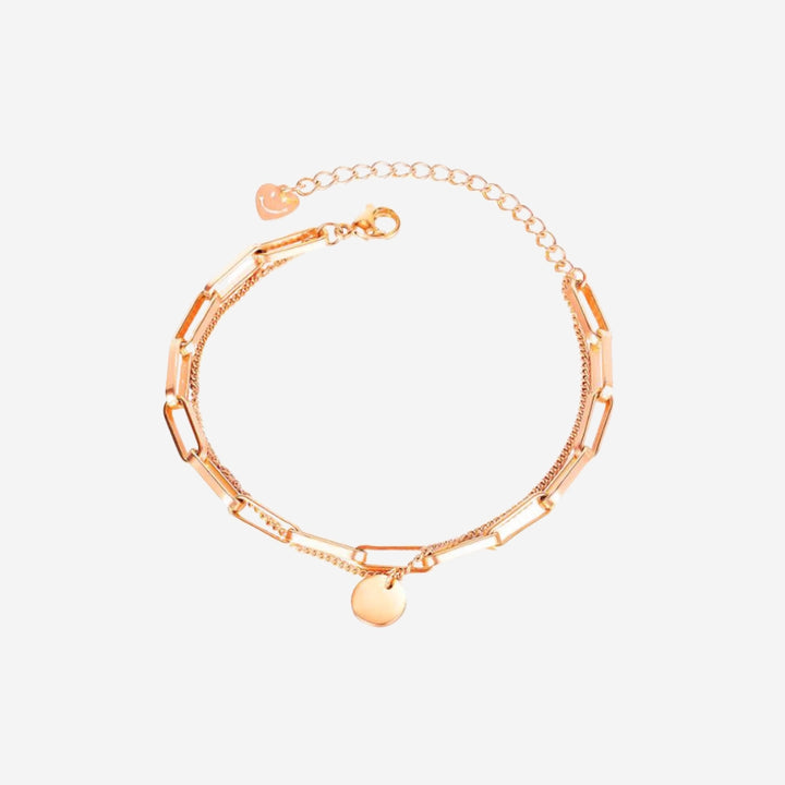 多链设计的手链,给人层次感。迷你奖章不仅可以作为亮点,还可以刻上您的特殊信息。延长链上的笑脸吊饰与优雅的手链相得益彰。