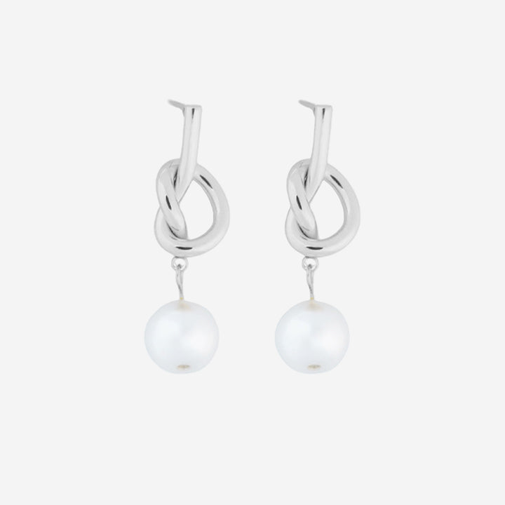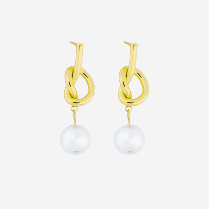 The intertwined knot design symbolize Unbreakable will and strength, with the pearl suspended gracefully below. Ideal for accentuating both daily attire and evening wear, these earrings offer a timeless reminder of enduring affection.