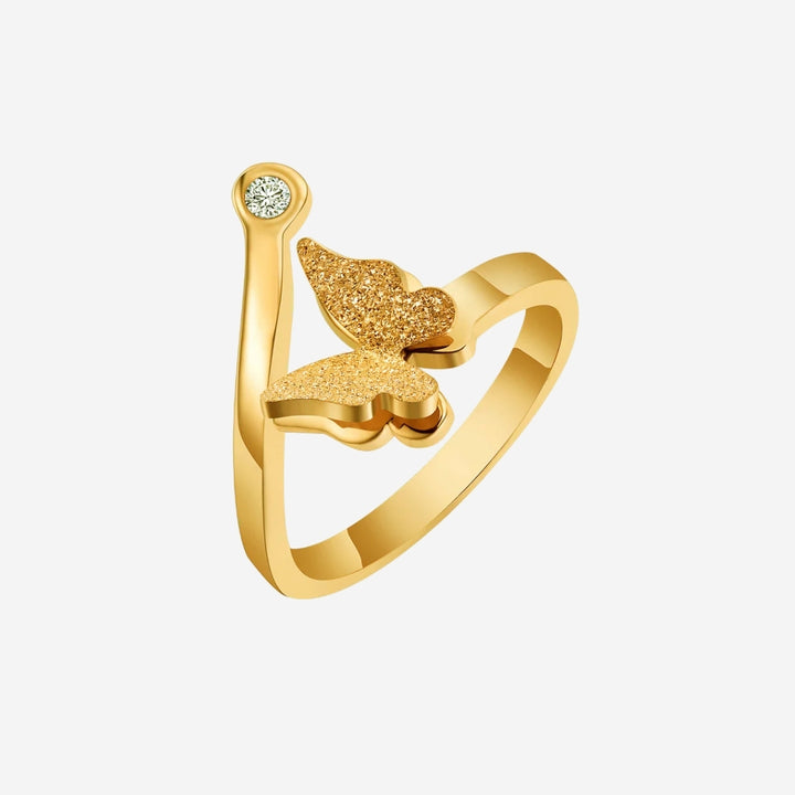 一款精致的戒指,轻轻地缠绕在手指上,就像您日常场合的伴侣。它描绘了蝴蝶从闪闪发光的氧化锆上螺旋向下的运动。