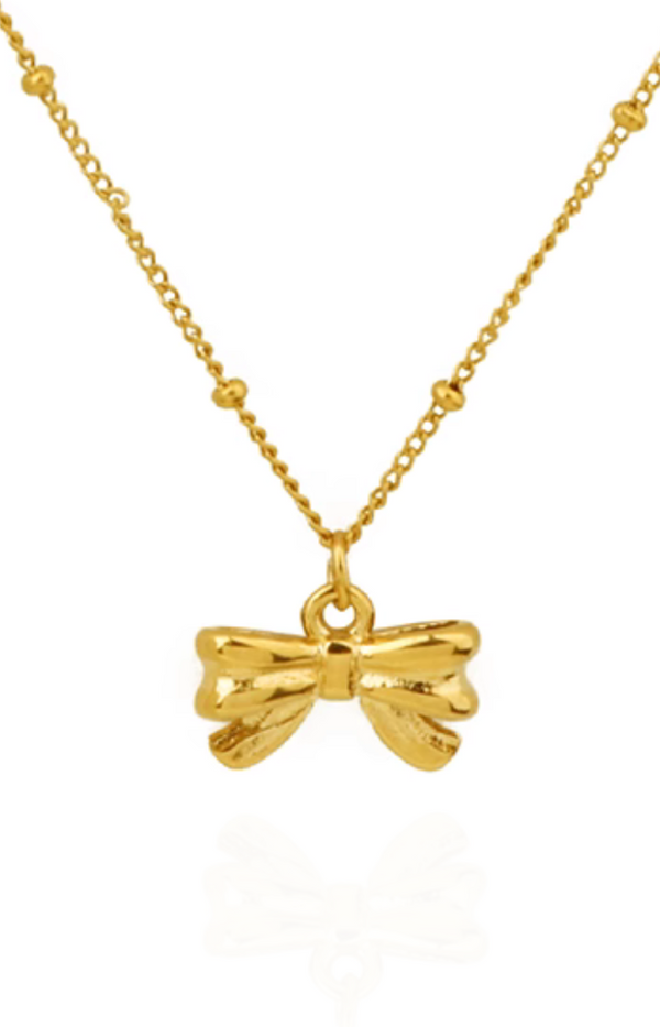 Ruby Elegance Ribbon Pendant Necklace in Gold
