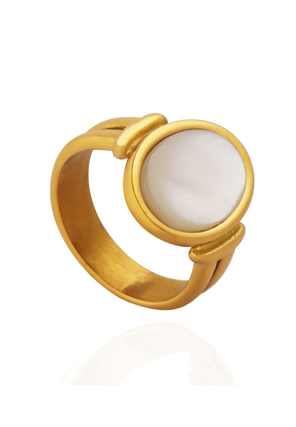 Yuri Engravable Mother of Pearl Band Ring in Gold