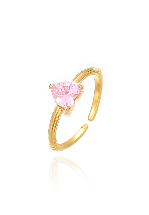 Lovissa Love Heart Cubic Zirconia with Adjustable Cuff Ring in Gold