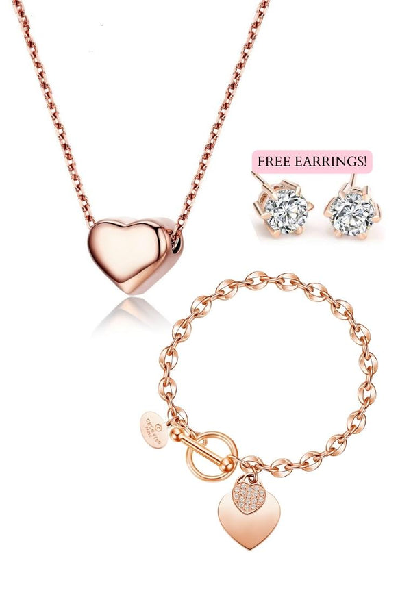 La Devotion 手链配 Amora Love 吊坠项链礼品套装(免费 Elsie 耳环)