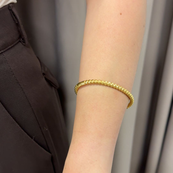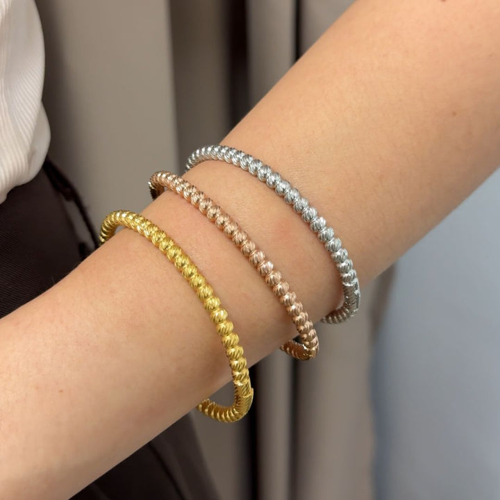 Fashioned with an intricate rope-twist pattern, each twirl reflects light, adding visual intrigue while mirroring the depth and richness of life's heartfelt moments. More than just an accessory; it’s a companion on your journey through both celebrations and everyday delights.