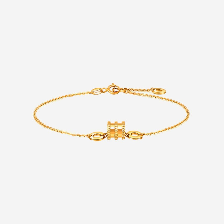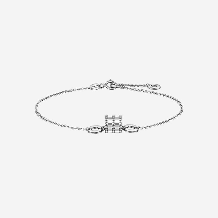 精致的链式手链以其标志性的锯齿状桶形吊坠凸显特色。两侧饰有数字链节,给人一种平衡感,进一步提升了优雅感。适合任何场合的绝佳选择。