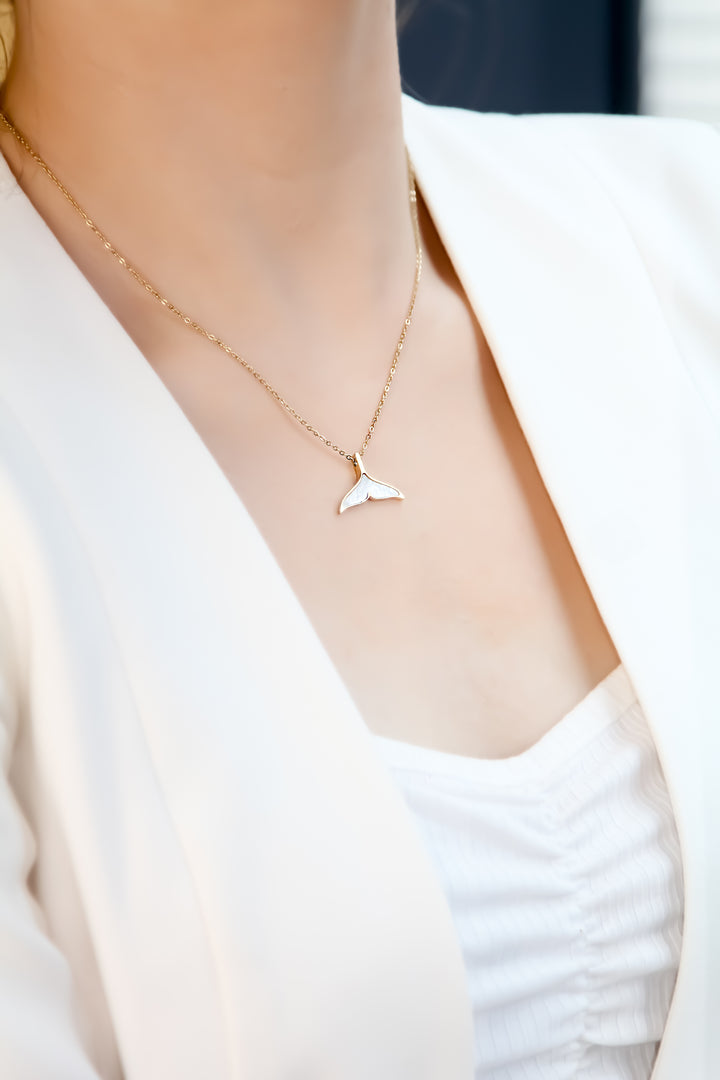 灵感源自美人鱼尾巴的项链。尾巴采用珍珠母贝设计,从各个方向观看时都呈现出优雅的象牙色光泽。 生活是一片海洋,教你成为自己的美人鱼。