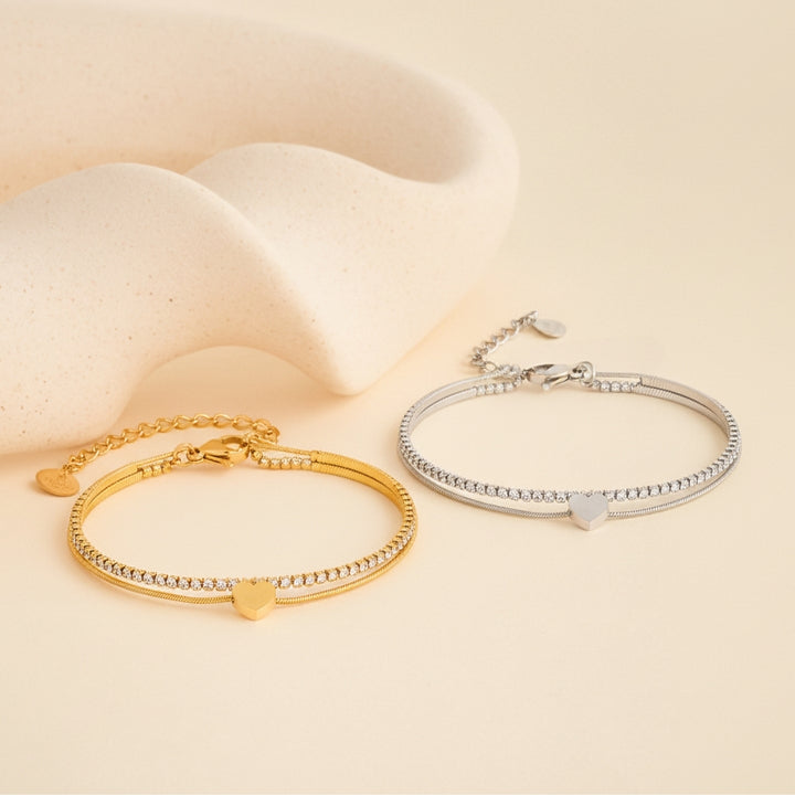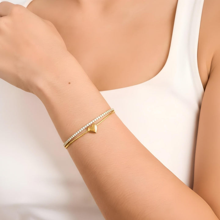While the dual-layer construction mirrors the balance of strength and tenderness within every woman. The adjustable clasp ensures a refined fit, allowing the bracelet to drape delicately against the wrist with effortless charm. The Hazel Bracelet is a tribute to the kind of love that is both soft and strong beautifully unbreakable, just like you.
