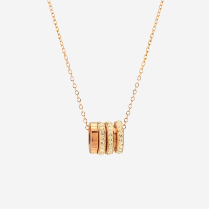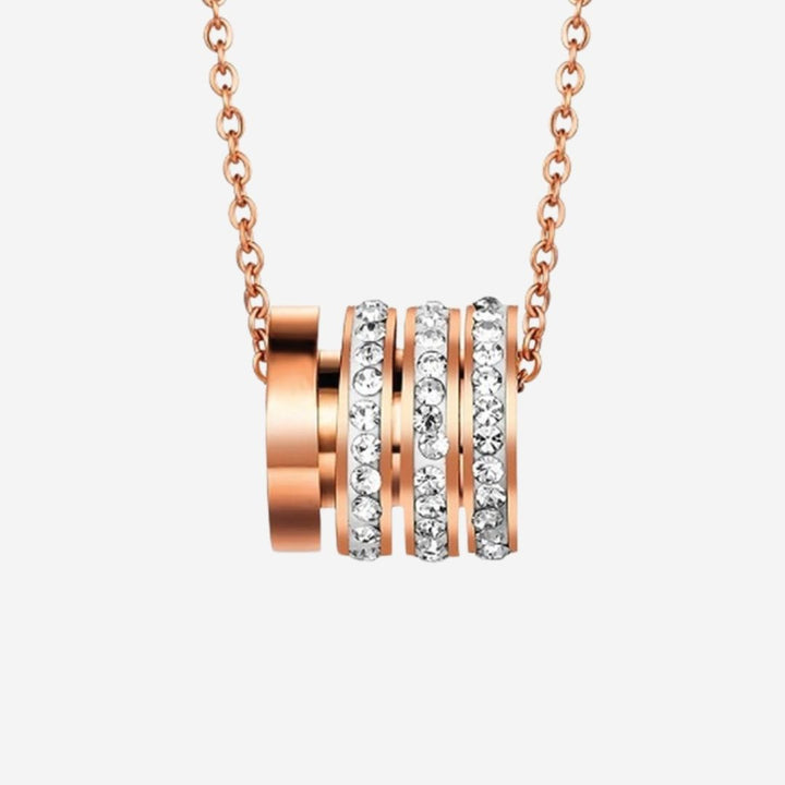 Celovis Jewellery - Jordana Barrel Roll Ring Pendant in Rose Gold Chain Necklace