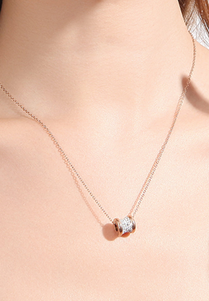 Celovis Jewellery  Lumina Zirconia White Barrel Pendant in Rose Gold Chain Necklace