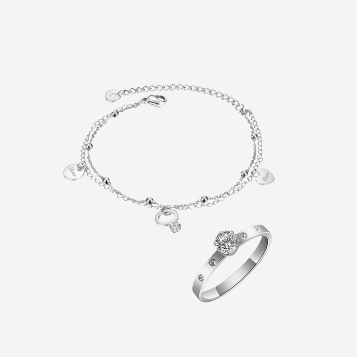 Marry 戒指手链搭配 Arwen CZ 单石单戒戒指礼品套装