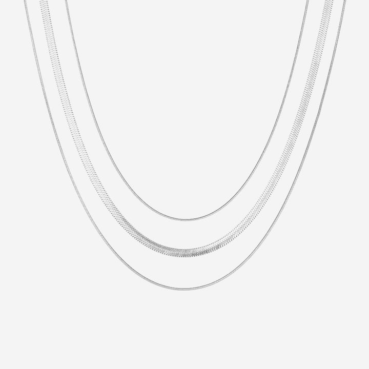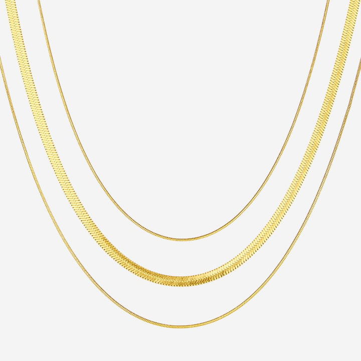 Celovis Jewellery Sahara Herringbone Plain Three Layer Chain Necklace in Gold